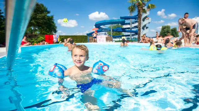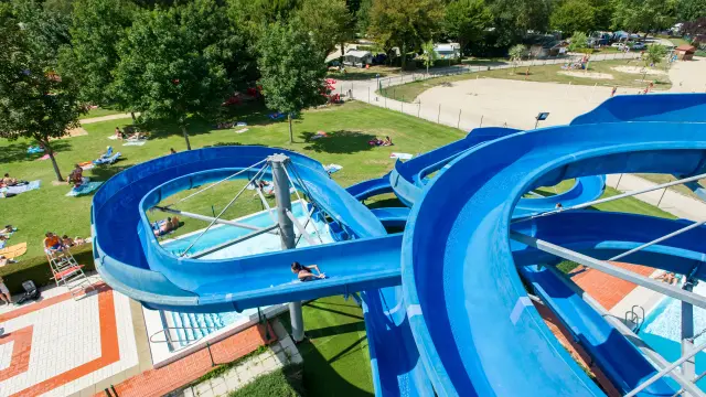 Les plus grands navigueront entre la piscine couverte chauffée, les piscines extérieures, les 2 toboggans géants, la plateforme de jeux d’eau et le sauna…