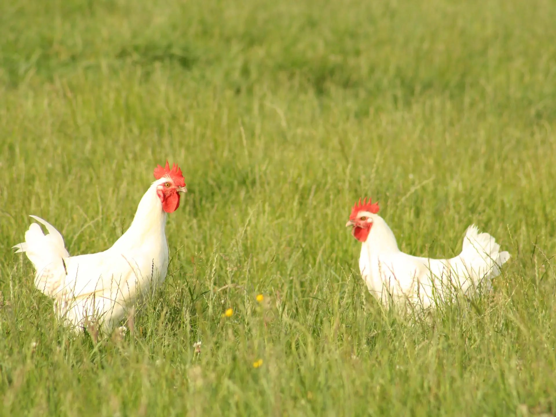 Ses volailles, à la crête rouge, aux plumes blanches et aux pattes bleues sont élevées en pleine nature selon les règles définies pour obtenir l’appellation AOP (appellation d’origine protégée).