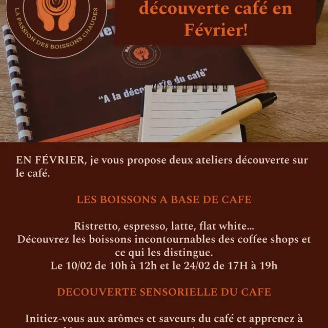 En février je vous propose deux ateliers. Un premier pendant lequel nous verrons l'ensemble des boissons à base de café que vous pouvez rencontrer dans un coffee shop et nous les détaillerons afin que vous trouviez VOTRE boisson.