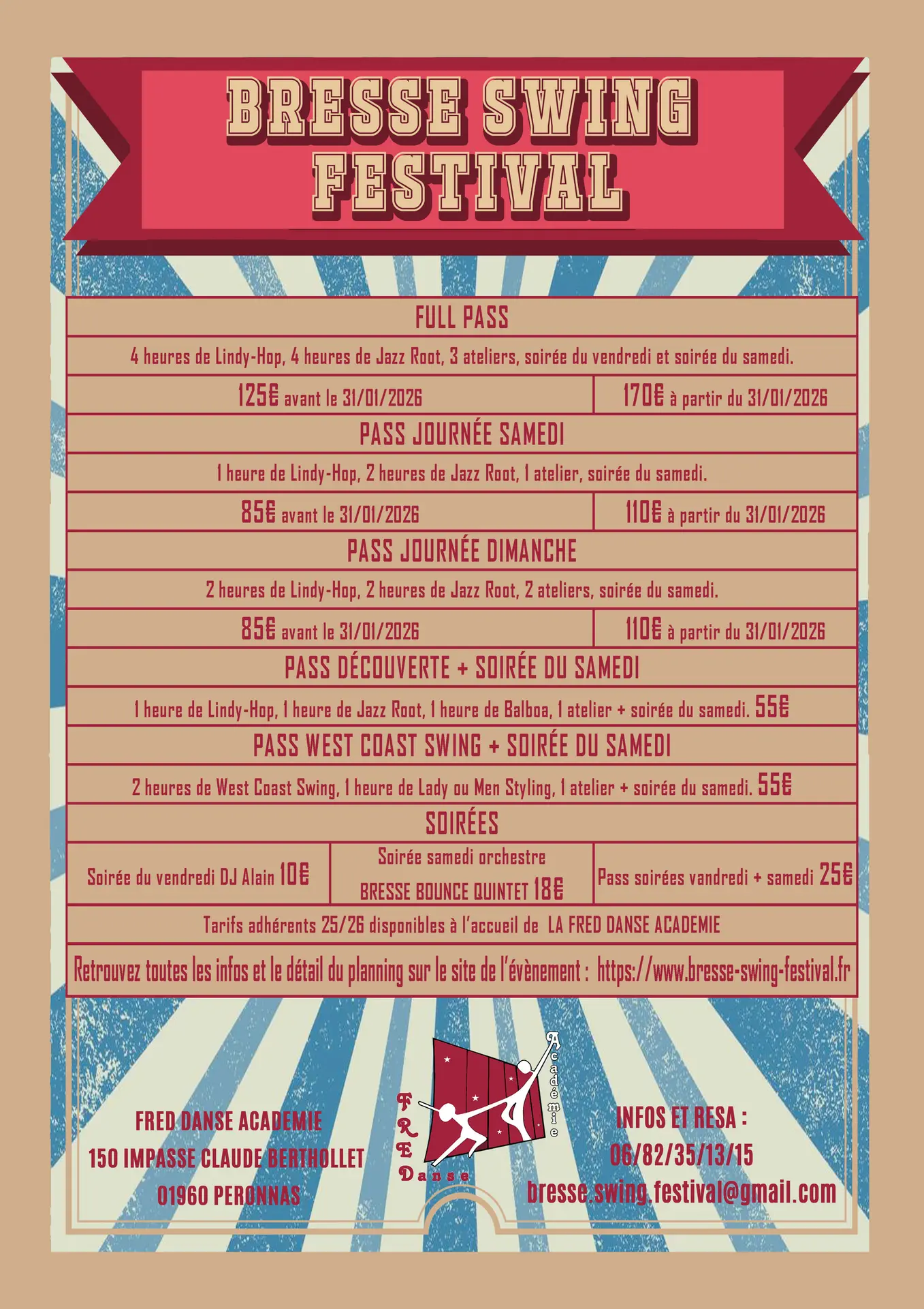 Nous vous proposerons deux soirées une avec DJ et une avec l’orchestre Bresse Bounce Quintet!