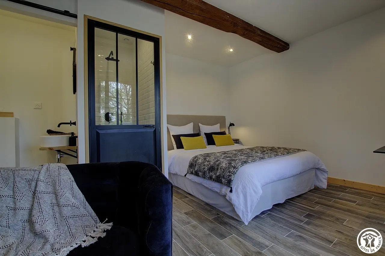 A Jayat, Céline vous ouvre les portes de ses deux chambres d'hôtes situées dans le prolongement de sa résidence principale et à proximité des 3 gîtes . Par un chemin commun, vous accéderez en bout de propriété sur une chambre familiale pour4 personnes comprenant un séjour et salon privatif à cette chambre et au 1er étage, une mezzanine avec deux lits simples et dans le prolongement une deuxième chambre équipée d'un lit en 160*200. Salle d'eau avec WC privative. La deuxième chambre "Côté Rivière" est conçue pour recevoir 2 personnes. Depuis son entrée indépendante, la chambre à la décoration industrielle, est composée d'un lit double (160x200), d'un petit espace détente avec plateau de courtoisie et, derrière la verrière, se trouvent la douche et le WC séparé privatifs. Le petit-déjeuner, copieux et avec des produits du terroir, sera pris soit dans la pièce de vie, soit à l'extérieur aux beaux jours. La table d'hôtes, sur réservation, sera proposée dans le restaurant traditionnel et gourmand de Céline où vous découvrirez les produits locaux et safranés. Lors de votre étape ou votre séjour, des week-ends sur le thème du safran vous seront proposés et ainsi que la possibilité d'un moment de détente, de relaxation et de bien-être lors d'une séance de massage.