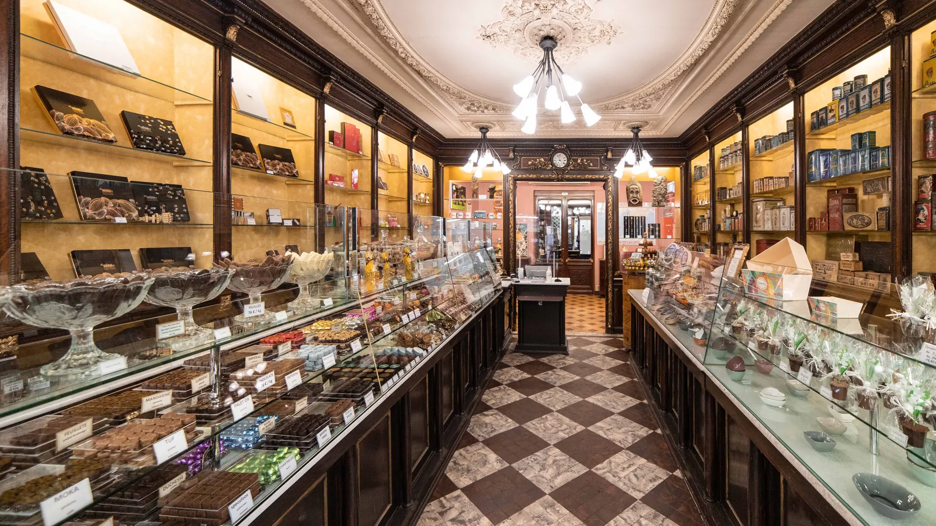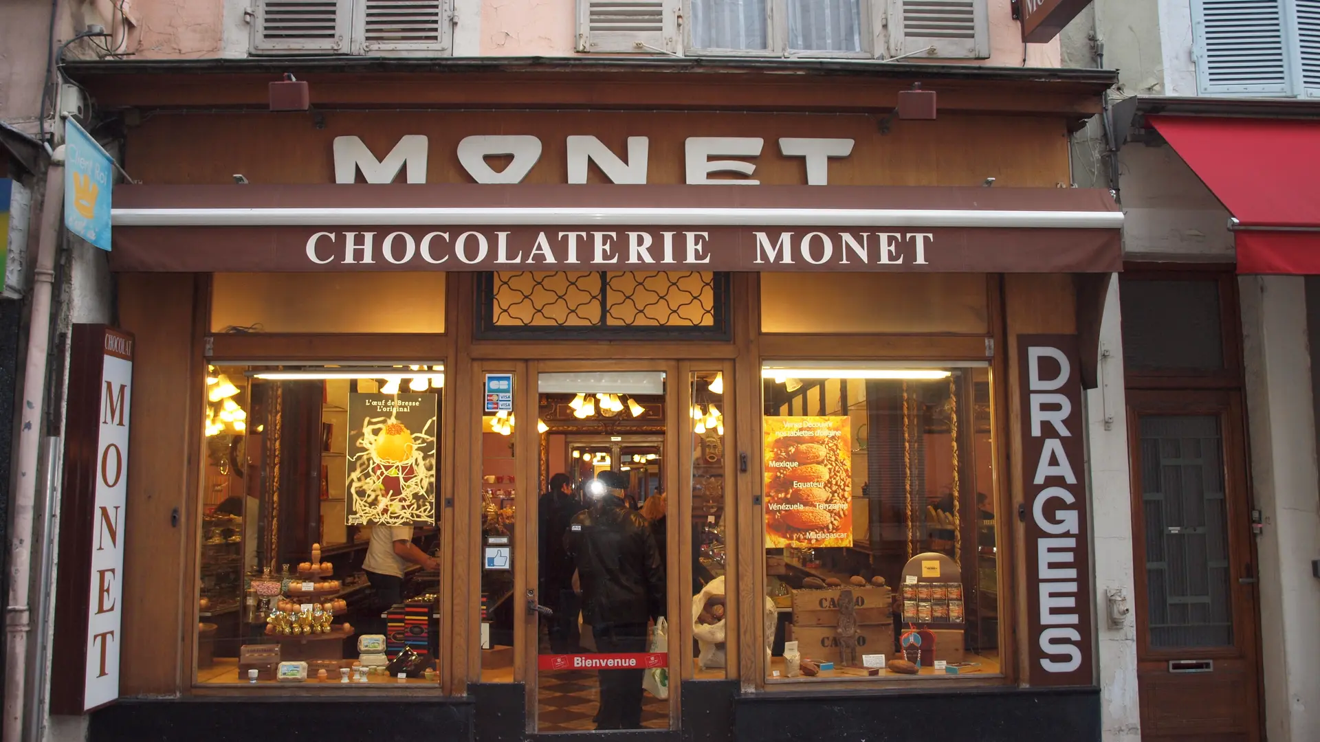 La chocolaterie Monet est une entreprise artisanale. La boutique de chocolats existe depuis 1906 et le magasin a gardé une certaine authenticité avec ses dorures et ses montures.