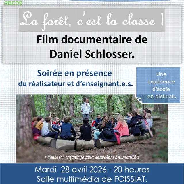 Film documentaire en présence du réalisateur : "Durant toute l’année, chaque mardi, quel que soit le temps, une enseignante du Doubs, fait l’école en extérieur : […] "