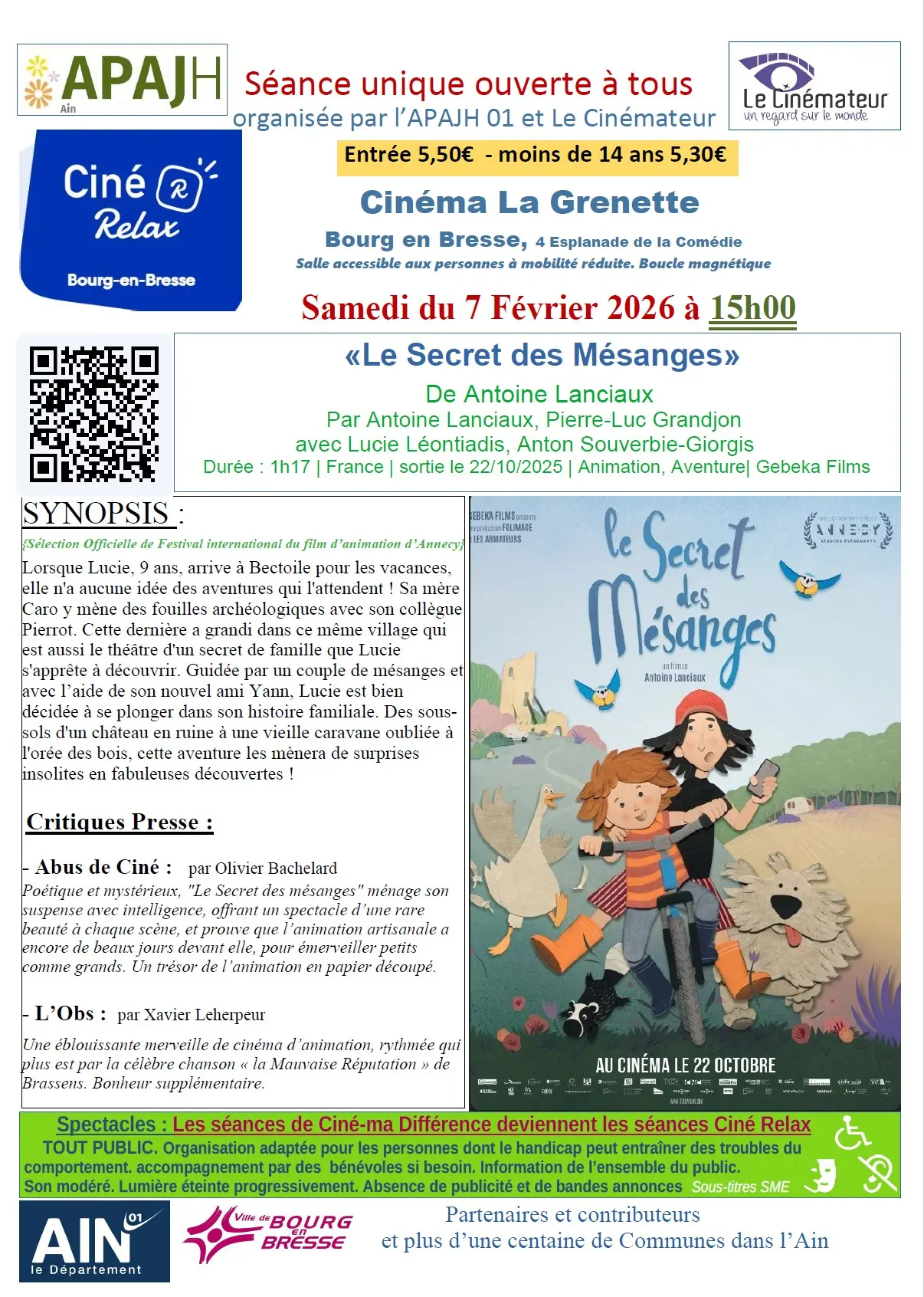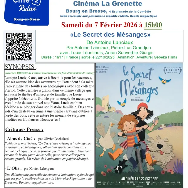 Contactez Cinéma inclusif de Ciné Relax : Film «Le Secret des Mésanges»