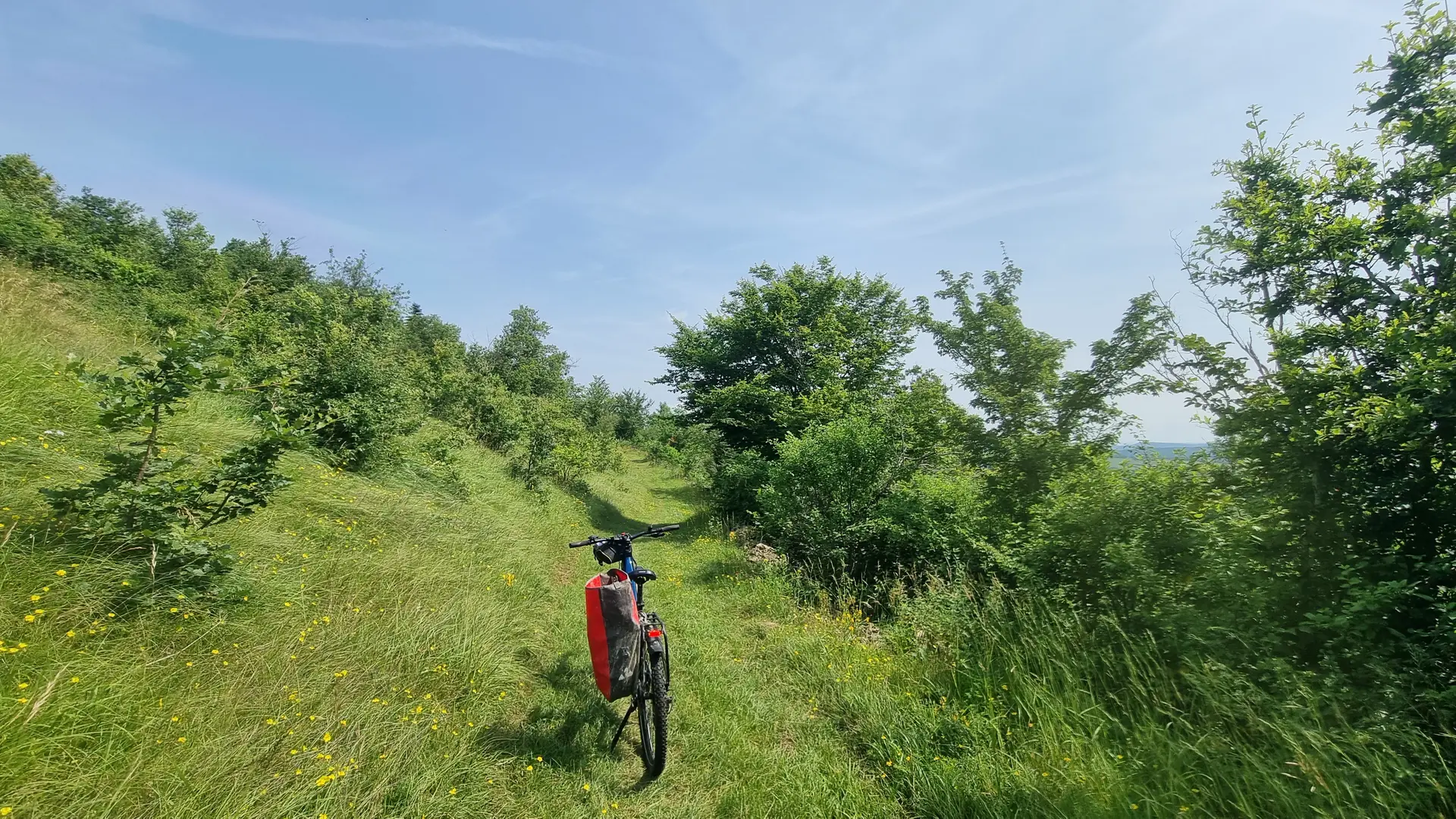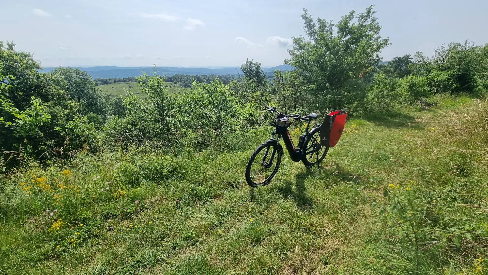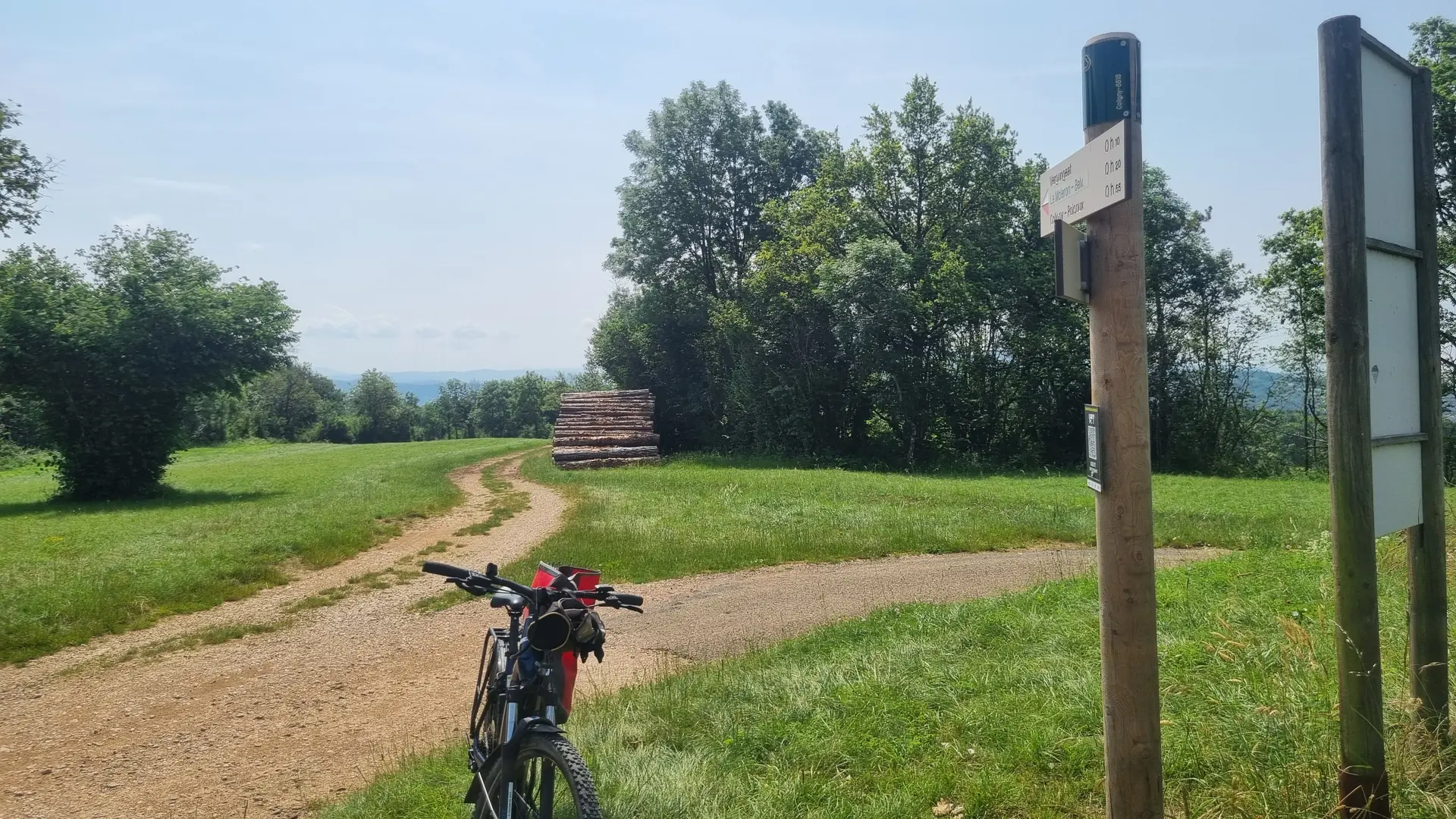 Variante longue suivre le n°9 (rouge) jusqu'à la base de loisirs de la Grange du Pin et le sommet du Mont Myon. Attention à la batterie !!