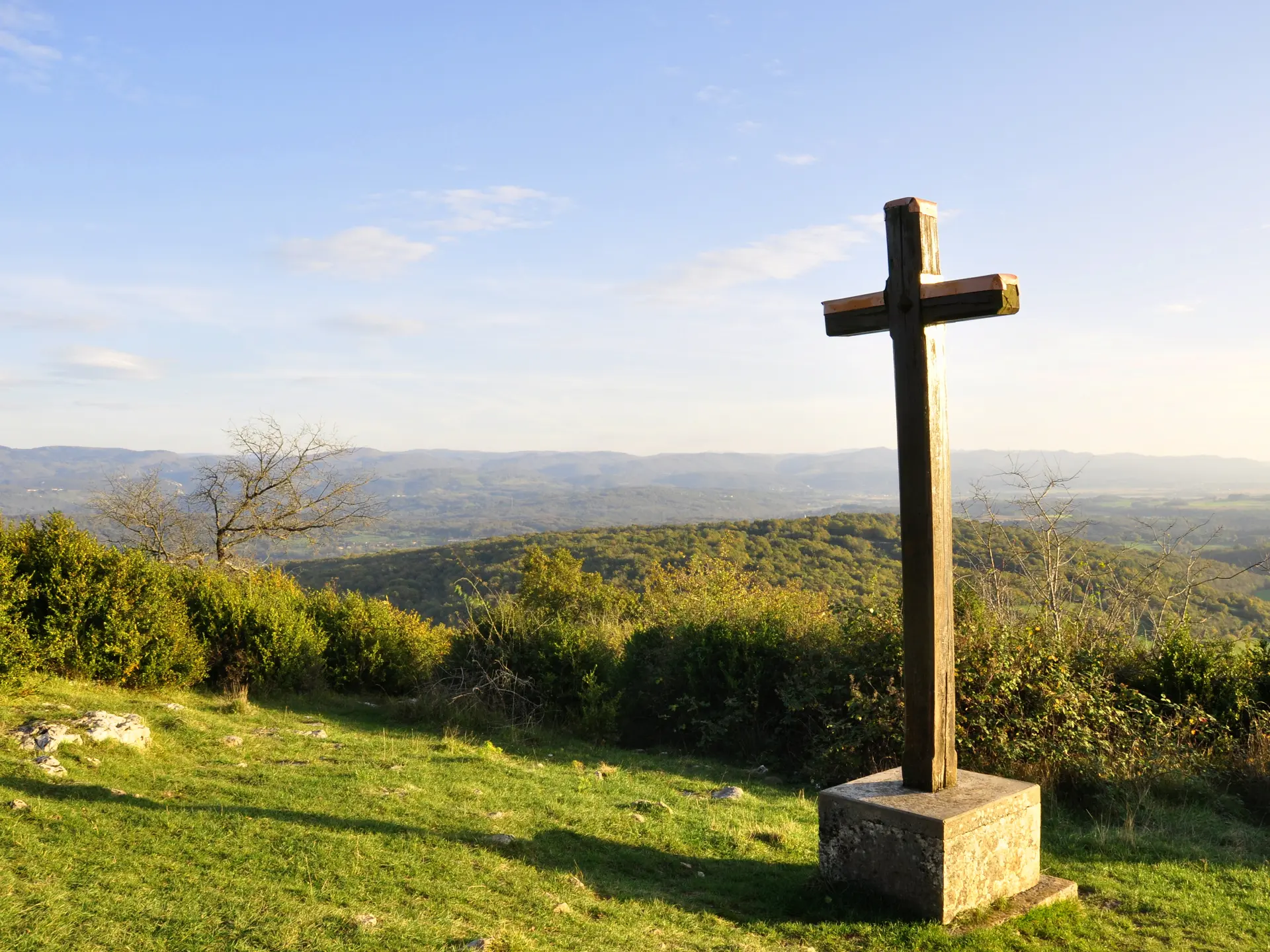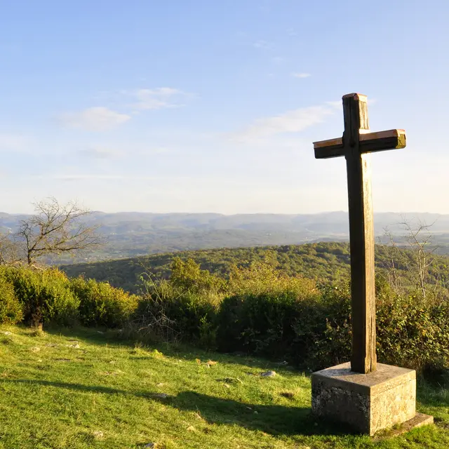 Ascension de la Croix de la Dent (555m) où vous pourrez admirer un panorama exceptionnel sur la chaîne des Alpes et le Bugey.