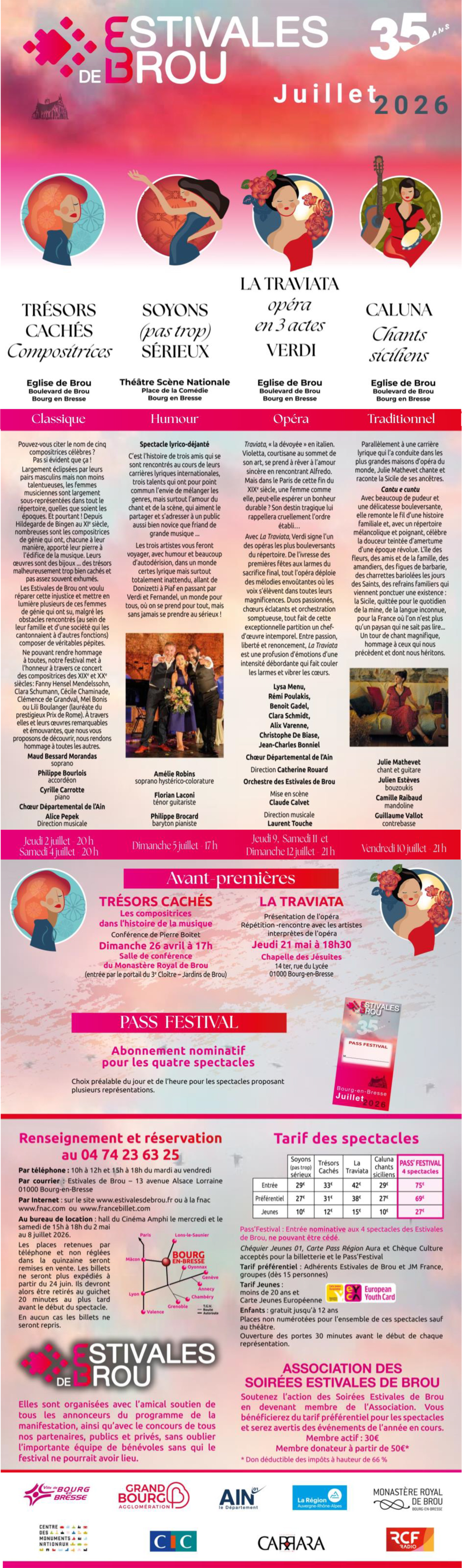 Les Estivales de Brou ont été créées en 1989 dans le Monastère Royal de Brou pour offrir au public l'Art Lyrique sous toutes ses formes : opéra, opéra-bouffe, concert, récital, musique sacrée.