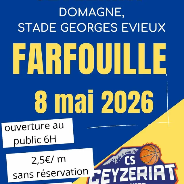 Farfouille à Ceyzeriat, Domagne, au stade Georges Evieux. Ouverture au public à 6h. Barbebue, frites et buvette sur place.