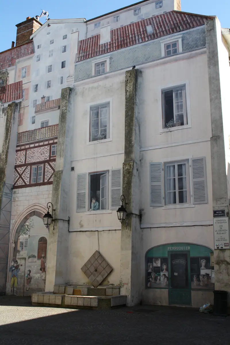 La rue des Bons Enfants est ornée d’une sympathique fontaine qui semble sortir de la fresque en trompe-l’oeil.