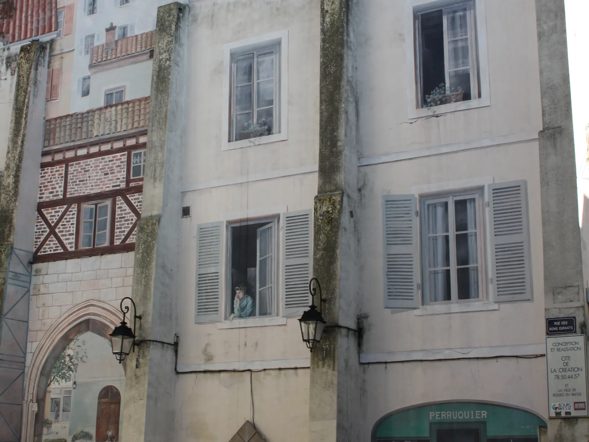 La rue des Bons Enfants est ornée d’une sympathique fontaine qui semble sortir de la fresque en trompe-l’oeil. Ce dernier fut peint en 1989 par la Cité de la Création (aujourd'hui "Cité Création") de renommée internationale.