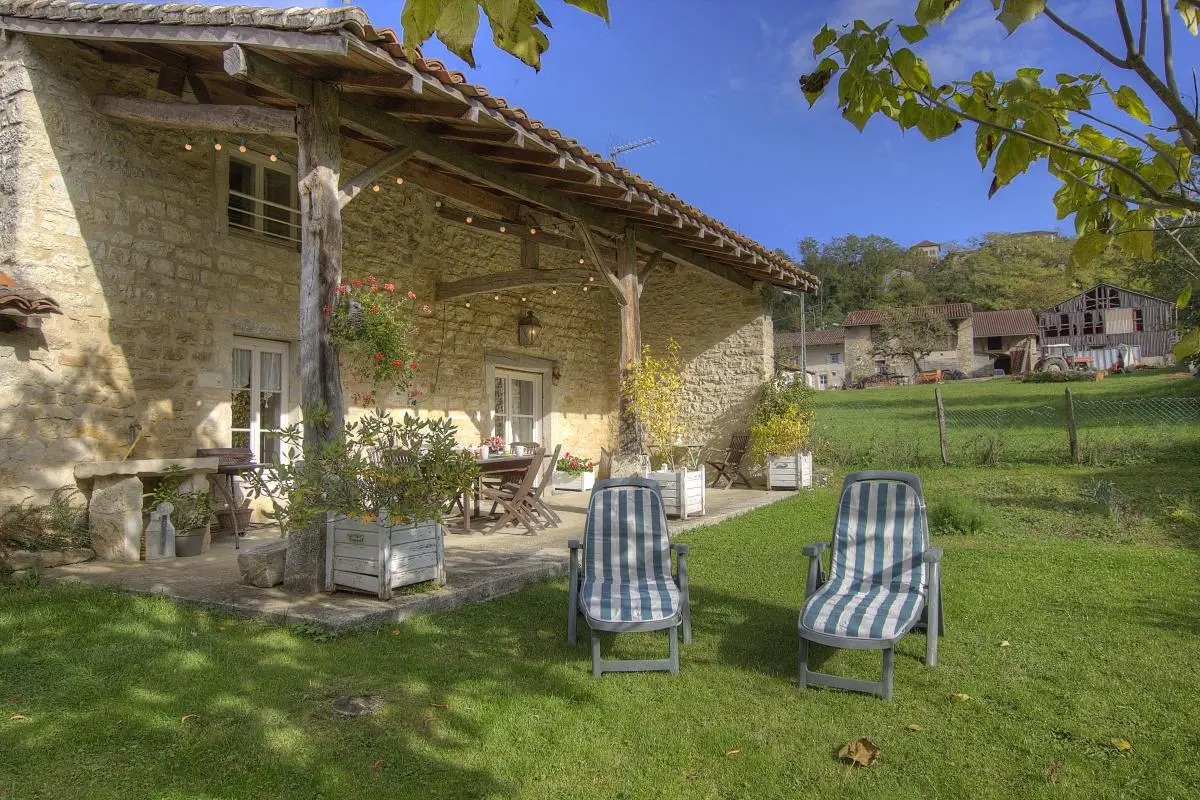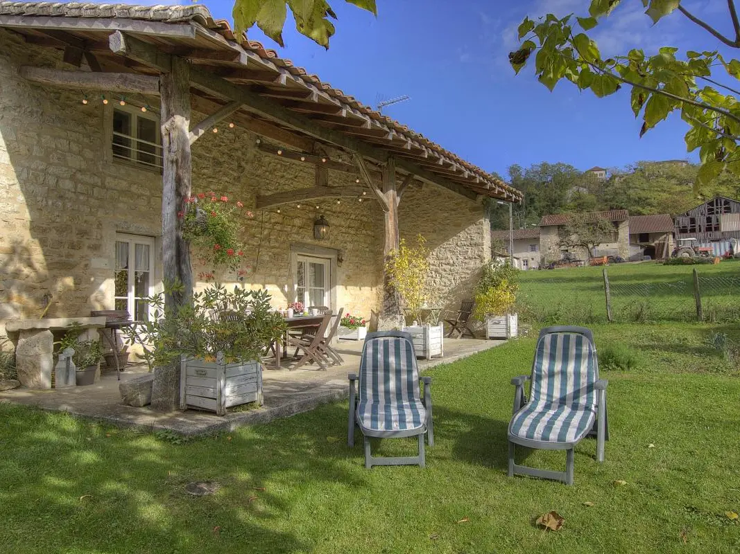 Gîte (85m²) aménagé avec goût, dans une belle bâtisse en pierre du 19ème, comprenant au rez-de-Jardin une grande pièce de vie avec cuisine intégrée, séjour et coin salon. WC et vestiaire. A l'étage, 2 chambres (1 lit 2 personnes, 1 lit 2 personnes 160 cm et 1 lit 1 personne 120 cm), avec chacune salle de bains ou salle d'eau. WC sur le palier. TV avec TNT, lecteur CD. Internet ADSL. Le plus : Draps,linge de maison et de toilette fournis. Terrain clos, une grande terrasse couverte. Stationnement sur place. Option ménage: 50€. Gîte très bien situé pour découvrir la citée Médiévale de Pérouges, le Monastère Royal de Brou Bourg , le Festival d'Ambronay et son abbaye, Parc des Oiseaux de Villars les Dombes... A proximité du Jura, au carrefour du Bugey et ses paysages, la Dombes aux 1000 étangs, la Bresse et sa gastronomie vous permettent de découvrir l'architecture et la richesse de notre belle région.
