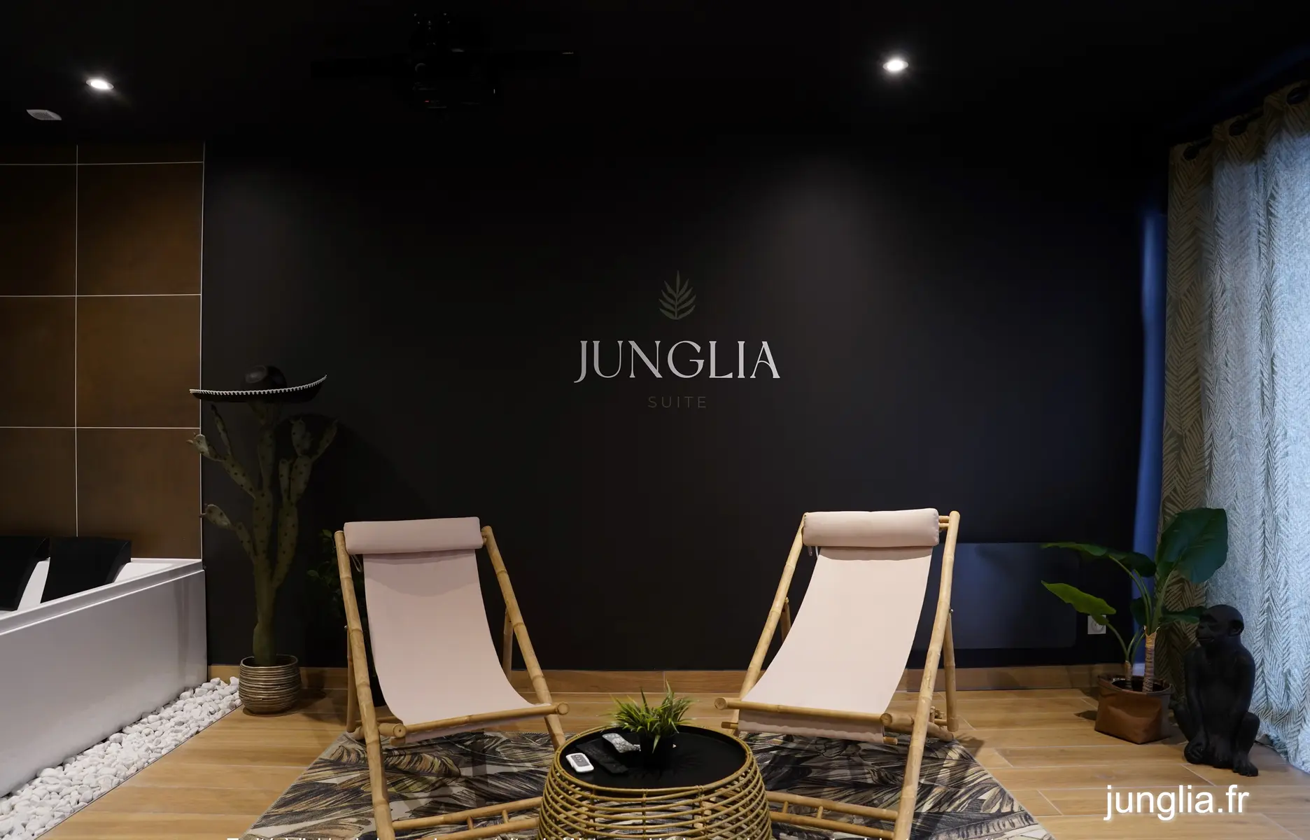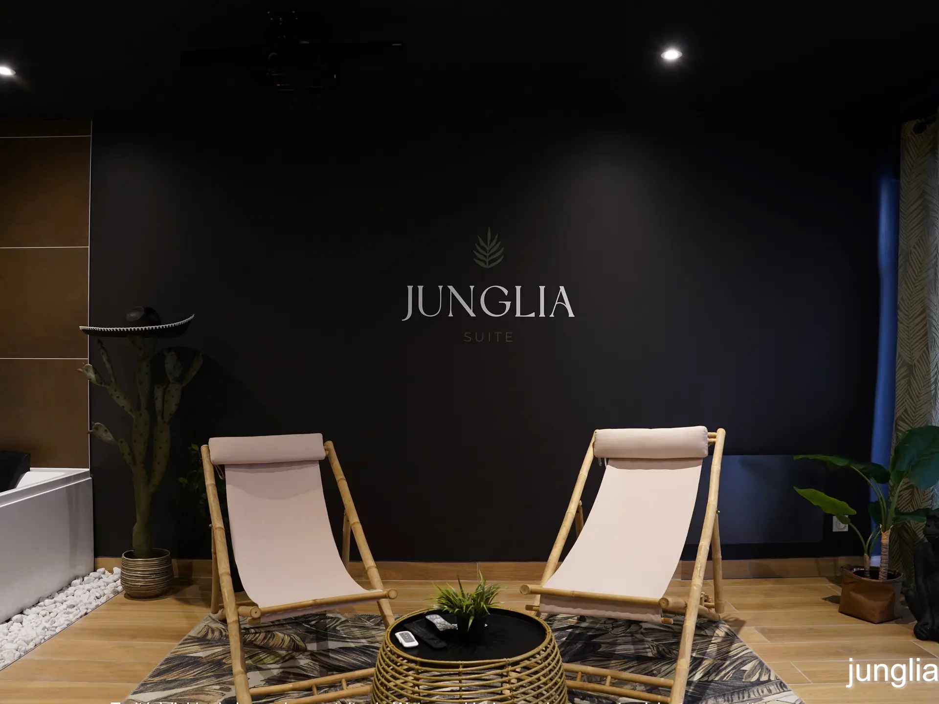 Découvrez Junglia, une évasion en plein centre de Bourg-en-Bresse où l'ambiance de la jungle rencontre le raffinement haut de gamme. Notre appartement vous offre une expérience unique. Plongez dans un jacuzzi privé, profitez d'un grand écran cinéma avec vidéoprojecteur et détendez-vous sous une douche chromothérapie. Le style chic de Junglia en fait l'endroit idéal pour une soirée inoubliable en couple. Réservez dès maintenant et laissez-vous emporter par l'atmosphère tropicale de la Junglia.