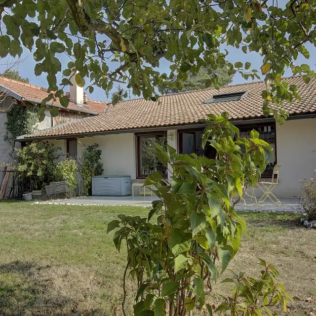 Au R.d.c., séjour/coin salon (conv. 2 pers 160cm), cuisine ouverte (m.o), salle d'eau avec WC, TV sur demande et DVD. A l'étage, mezzanine (2 lits 1 pers.), 1 ch (1 lit 2 pers). Chauf. cent bois et gaz, par le sol. Gite access aux pers hand. Animal accepté si accompagne pers à mobilité réduite. Terrasse, terrain clos, salon de jardin. Portique. Date constr: avant 1900. Date rénov: 2002. Forfait ménage poss 45?. Poss de pêche à voir avec propr. Bowling 7 km. Route de la Bresse et de la Dombes. Parc des oiseaux 20km.