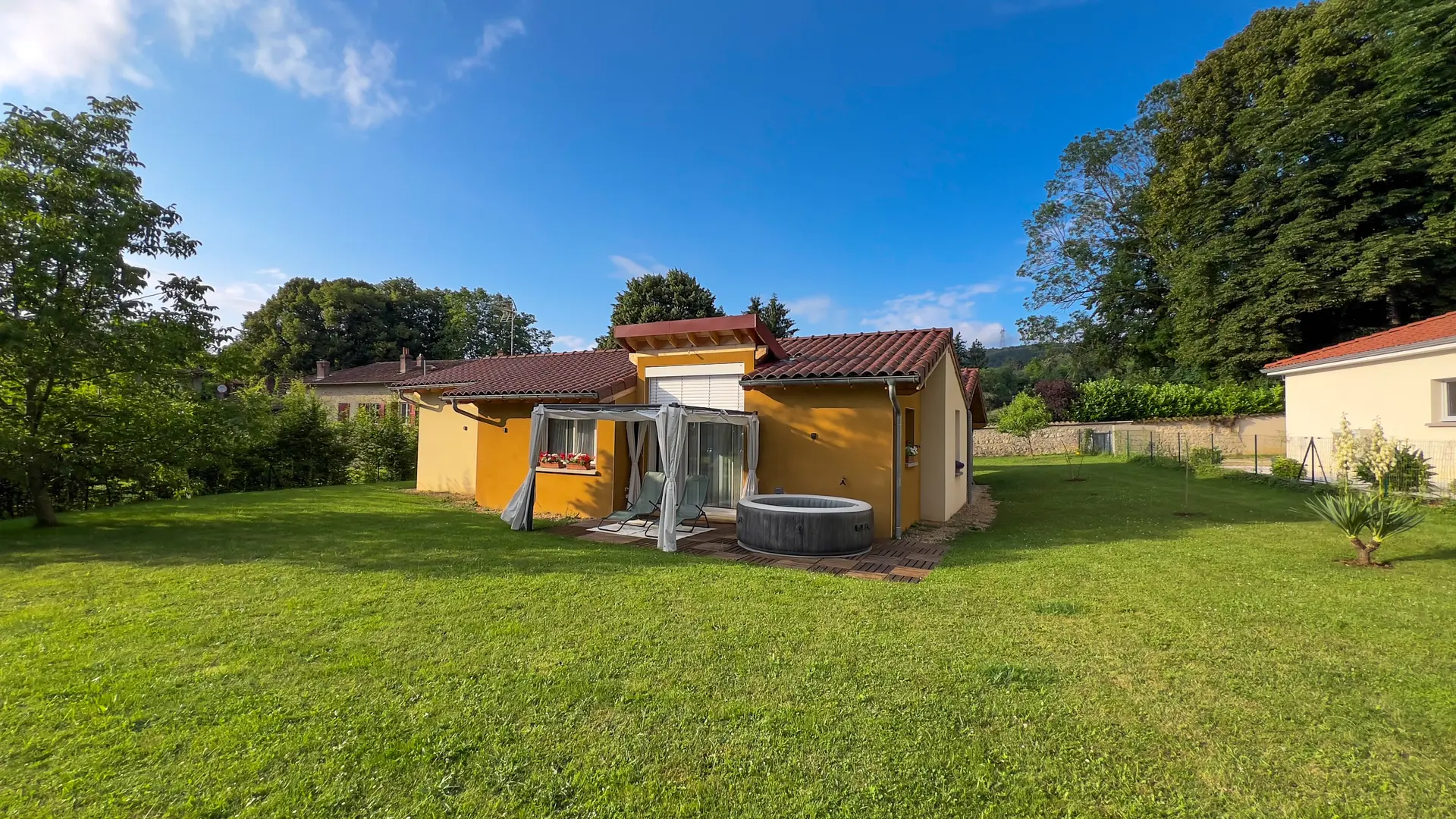 Au cœur de Meillonnas, charmant village historique de l’Ain, la Maison Greenvallee vous accueille entre forêts et montagnes, à seulement 10 min de Bourg-en-Bresse. Cette maison moderne et apaisante est idéale pour un séjour nature et découverte. Vous pourrez profiter d’un grand jardin avec jacuzzi, d’un intérieur cosy et lumineux, ainsi que d’un accès direct aux sentiers pédestres. À proximité : le Revermont et ses villages pittoresques, des musées, des châteaux, la gastronomie bressane et de nombreuses activités de plein air. La maison peut accueillir 4 à 6 personnes, avec 2 chambres confortables et un espace bureau transformable en chambre. Séjour minimum de 3 nuits, animaux acceptés.