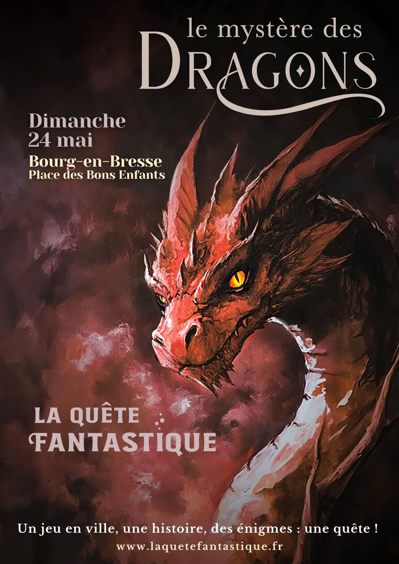 Plongez dans un jeu de piste immersif avec des énigmes déposées sur les vitrines des commerces partenaires du coeur de ville. Identifiez les dragons qui rodent dans le ciel de notre univers fantastique et tentez de les chasser ou de les apprivoiser ! Peut-être en profiterez-vous pour retrouver les villageois(es) disparu(e)s ?