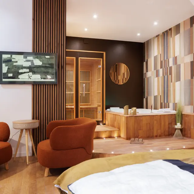 Détendez-vous dans notre baignoire balnéo, en vous laissant emporter par les bulles apaisantes après une journée de découvertes dans cette charmante ville. Ou bien encore en profitant des bienfaits du sauna à votre disposition.