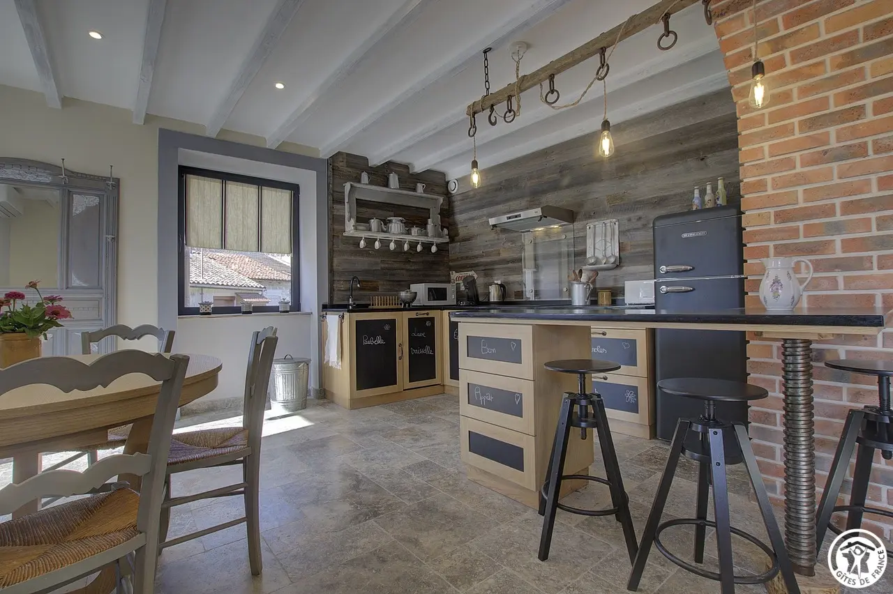 Dans un petit hameau de Druillat nommé " Turgon" cette ancienne ferme de 128 m2 entièrement rénovée, vous propose des prestations de qualité. Ce gîte qui peut accueillir 6 personnes vous séduira dès votre arrivée avec sa grande terrasse et son jardin bucolique. Au rez-de-chaussée : une cuisine entièrement équipée et un espace repas s'ouvrent sur le salon d'esprit bohème et sa cheminée à bûches (1ère malle de bois offerte puis 6€ par malle). Une buanderie tout équipée ainsi qu'une salle d'eau et des WC indépendants. Son escalier original qui rappelle le passé agricole de cette maison vous conduira dans 3 chambres douillettes et personnalisées. Vous aurez du mal à choisir entre la chambre " Amour " aux couleurs chatoyantes équipée d'un lit de 140*190 qui vous chuchotera sa verbatim et la chambre " Liberté " et ses deux lits de 90*200 qui inspire la douceur. Ces 2 chambres partagent une salle d'eau et WC sur leur palier ainsi qu'au rez-de-chaussée . La chambre " Plaisir " est une suite parentale, spacieuse avec son grand lit de 160*200 qui laisse découvrir derrière une verrière une étonnante douche " escargot " et une baignoire îlot . Garage privé, pompe à chaleur et climatisation viennent compléter le confort de ce lieu pour un séjour agréable en famille ou entre amis. Une multitude de sites à découvrir tels que le Monastère royal de Brou, le parc des oiseaux , la cité de Pérouges et de nombreuses activités nature, canoë Kayak, randonnées, équitation, pêche, route des étangs à vélo ...etc vous attendent et "LACOOLDOUSS " aussi.