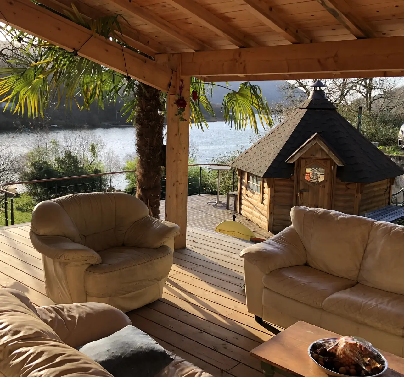 * Pour vos repas : selon la météo vous aurez le choix entre la salle à manger du rez-de-chaussée, la terrasse en bois et son barbecue à proximité, les canapés du salon d'été, ou par temps plus frais le petit chalet finlandais, espace insolite et particulièrement convivial.