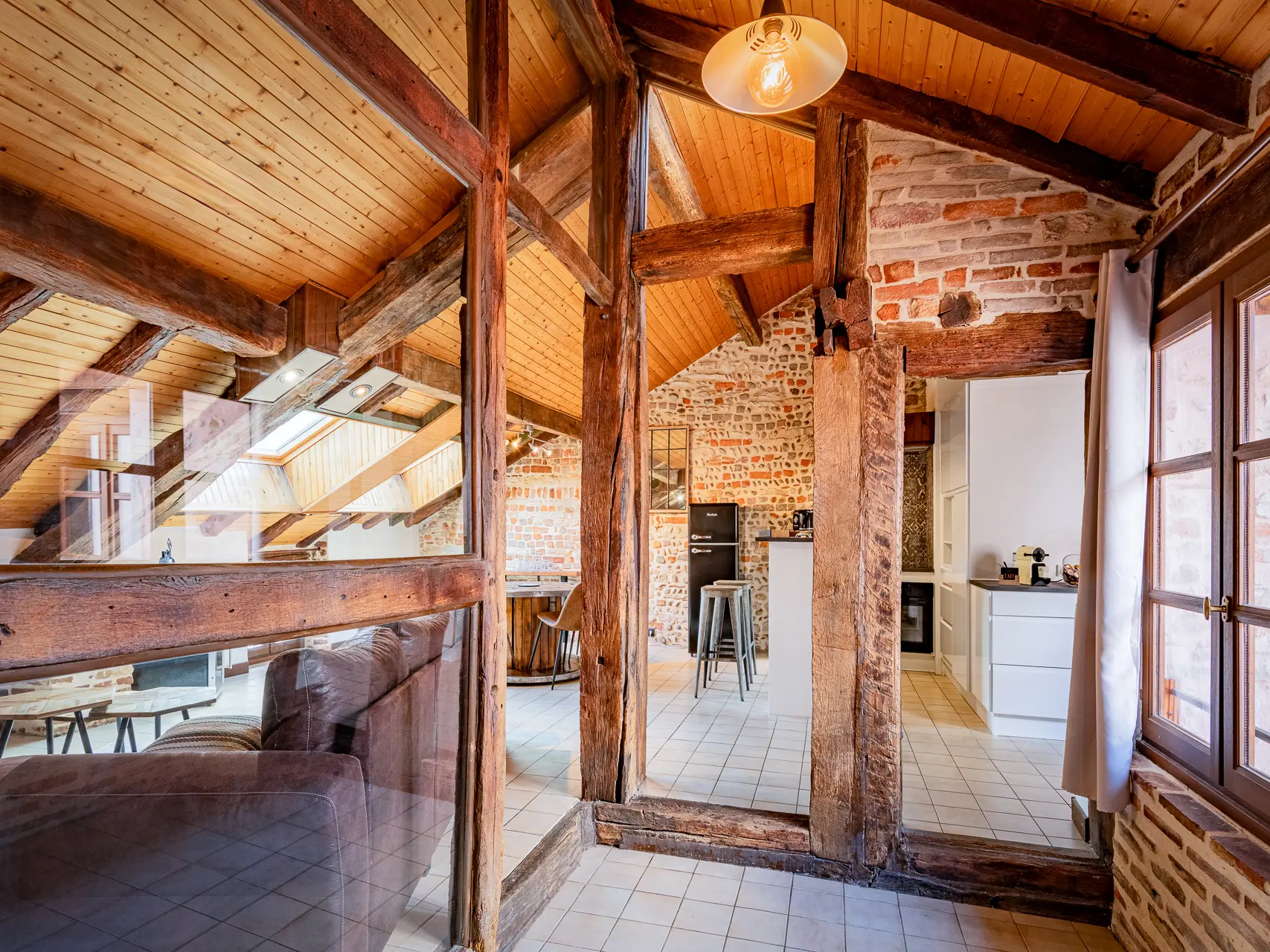 Niché dans la rue piétonne emblématique du centre-ville, cet appartement incarne le charme inégalé des maisons à colombage de la Renaissance.