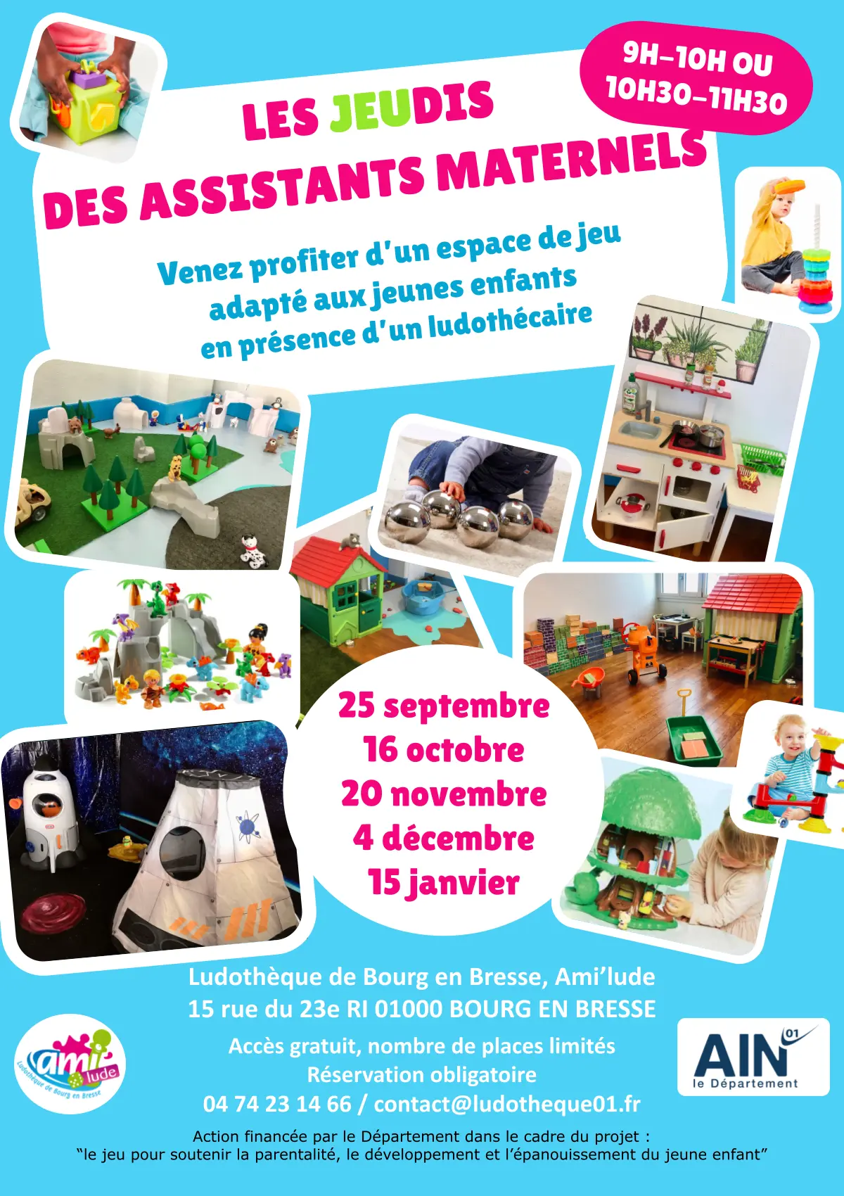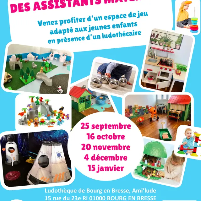 L’espace de jeu de la ludothèque Ami’lude est repensé spécialement pour les enfants de 0 à 3 ans et leurs assistants maternels. Venez profiter de jeux sensoriels et de manipulation, d’un espace de jeu d’imitation et de jeux de constructions et d’assemblage adaptés au plus jeunes. En présence d’un ludothécaire.
