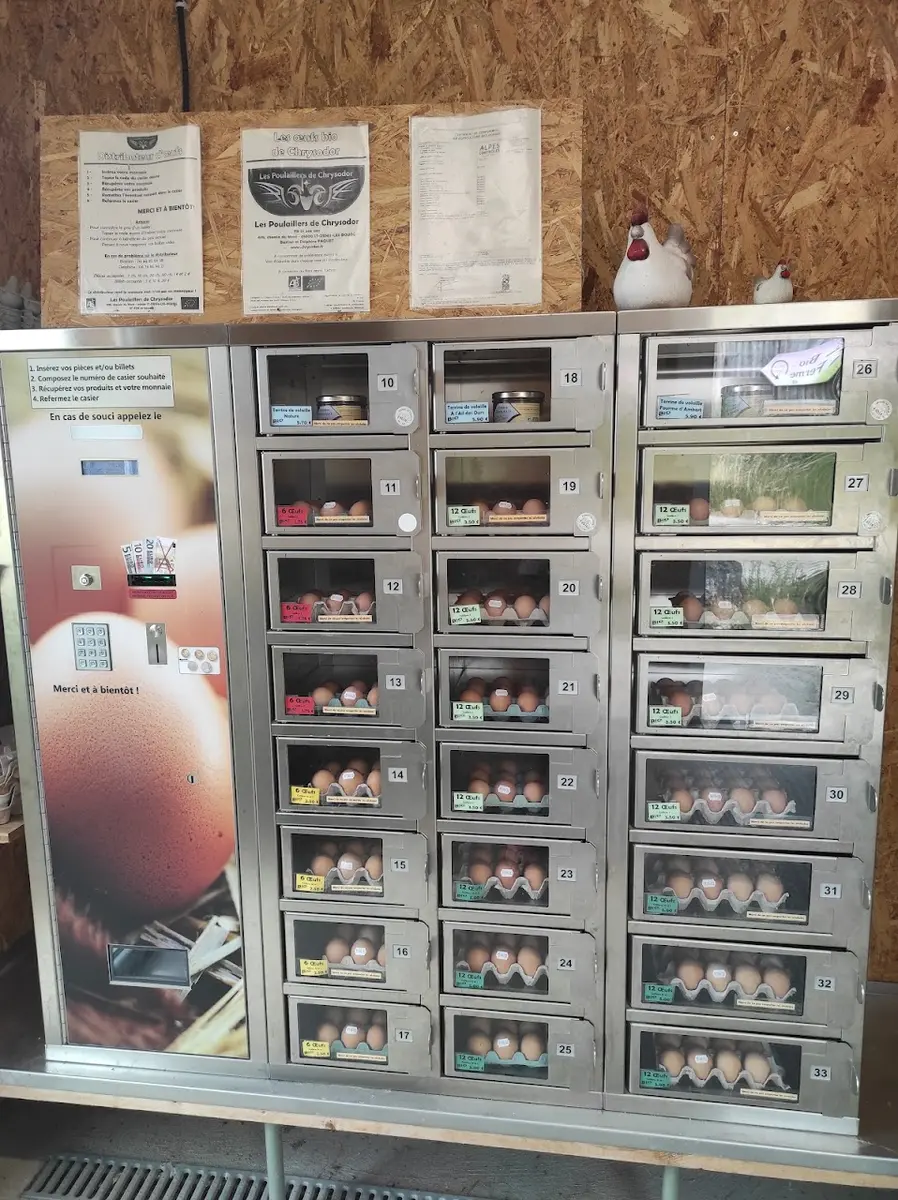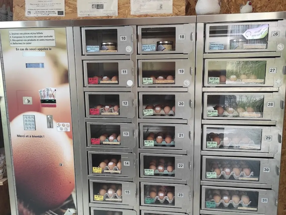 La ferme dispose d'un distributeur d'œufs accessible 24h/24 7j/7