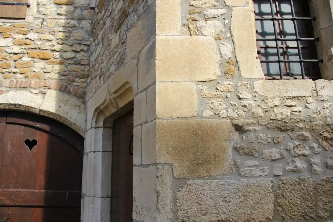 Contrairement aux habitations du même type en Bresse, dont les colombages sont garnis en terre ou en briques, les maisons de ce type de Meillonnas ont leurs colombages garnis de pierres.