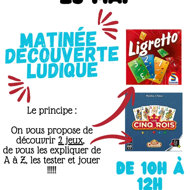 Et si on prenait le temps de bien vous expliquer les règles et vous faire jouer à 2 jeux ?! Au programme : les 5 Rois et Ligretto Jeux accessibles à partir de 7 ans.
