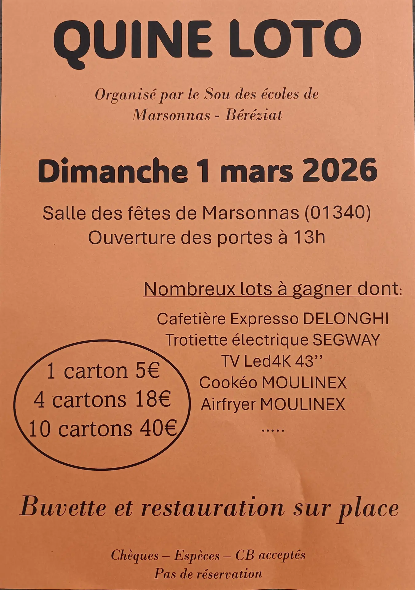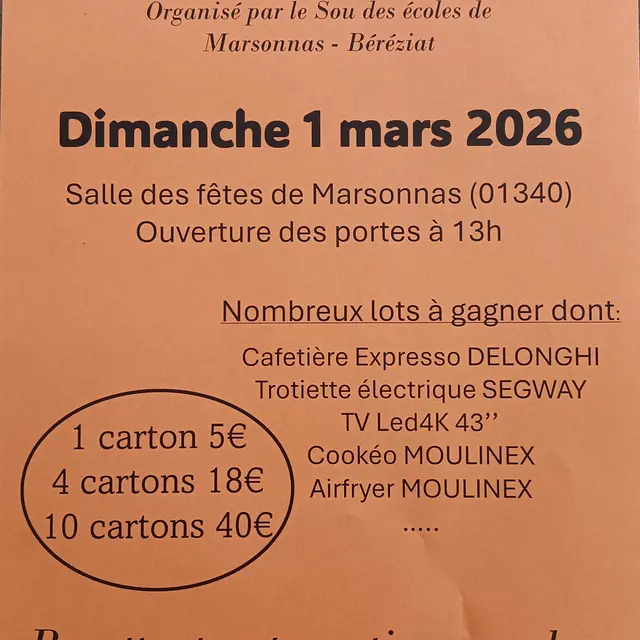 Quine Loto à Marsonnas, organisé par le Sou des écoles de Marsonnas - Béréziat.