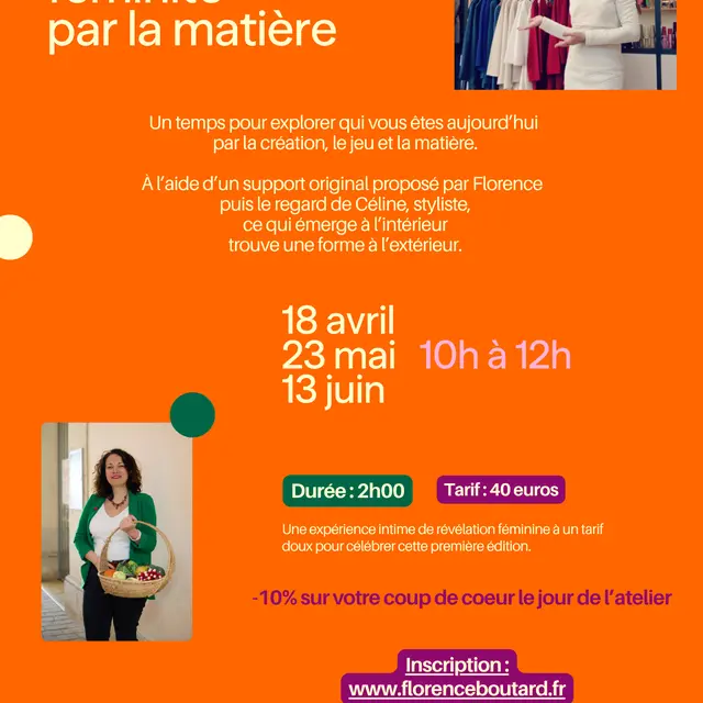 Florence vous accompagne pour partir à la découverte de la femme que vous êtes et Céline, styliste, vous montre comment mettre ça dans la matière.