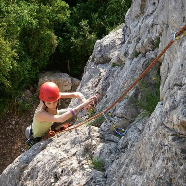 Ancien site d’un oppidum gaulois, ces roches à pic, défense naturelle, sont aujourd’hui de belles falaises d’escalade. Point de vue.