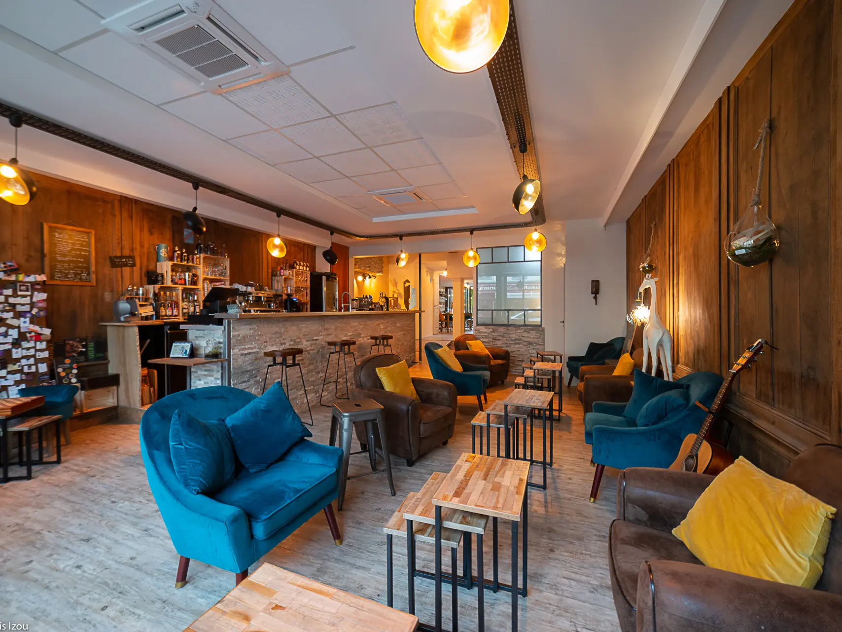 Ce workplace-café-bar-restaurant est un lieu qui apporte la dynamique dans notre travail, tout au long de la journée, qui offre un lieu d’after work, d’événements. Nous pouvons boire, manger, se poser, travailler.