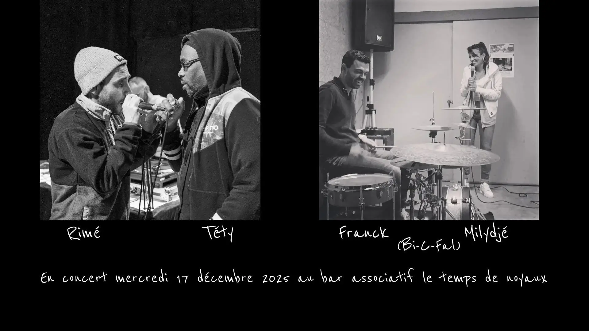 Milydjé, Franck ( Bi-C- Fal) , Téty & Rimé se partageront la scène du Temps des Noyaux pour vous donner de bons moments de RAP