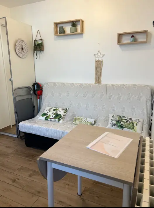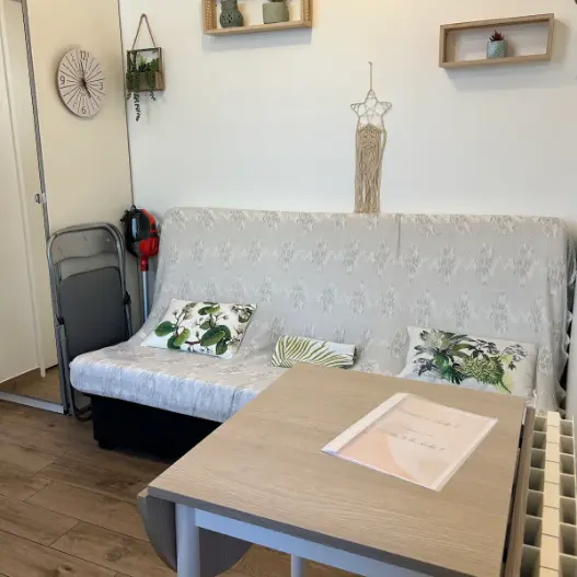 Le studio est un petit studio (12m2) est équipé d'un canapé lit confortable, le linge de lit et de bain sont à disposition.
