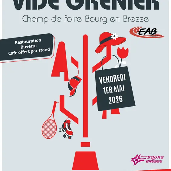 Vide grenier organisé par l'Entente Athlétique Bressane, Club d'Athlétisme de Bourg en Bresse. Restauration, buvette disponibles sur place.