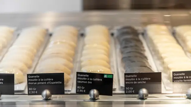 Quenelles moulées à cuillères de la Maison Giraudet à Bourg-en-Bresse. Ain.